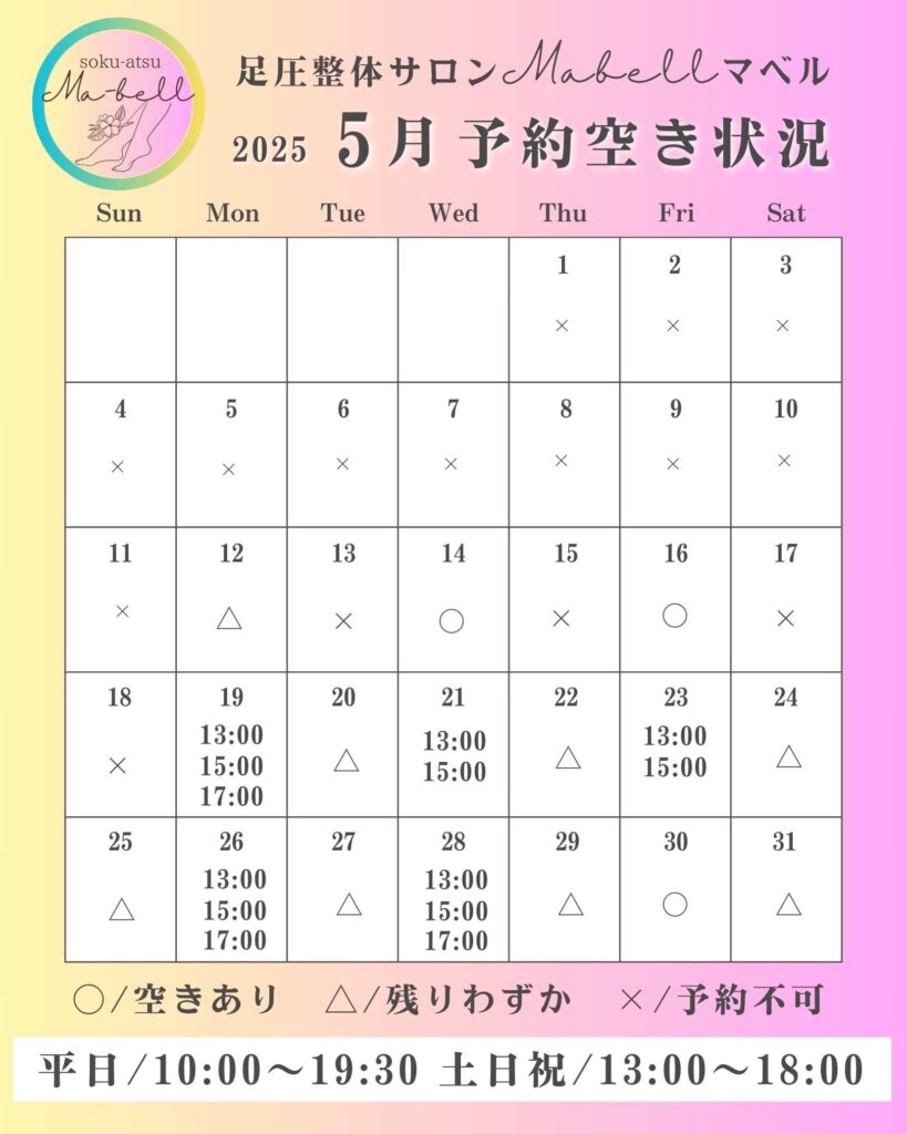 足圧整体サロンMabell【5月の空き状況】