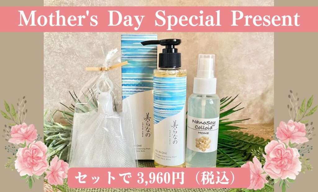 今年の母の日は5月11日(日)ですね。日頃の感謝を込めて、『優しさ』を贈ってみませんか?お母様はもちろん、日頃お世話になっている方への贈り物や、頑張る自分にプレゼントするのも良いと思います♪ 美らなのの『優しさ』は、なんと言っても天然由来成分...